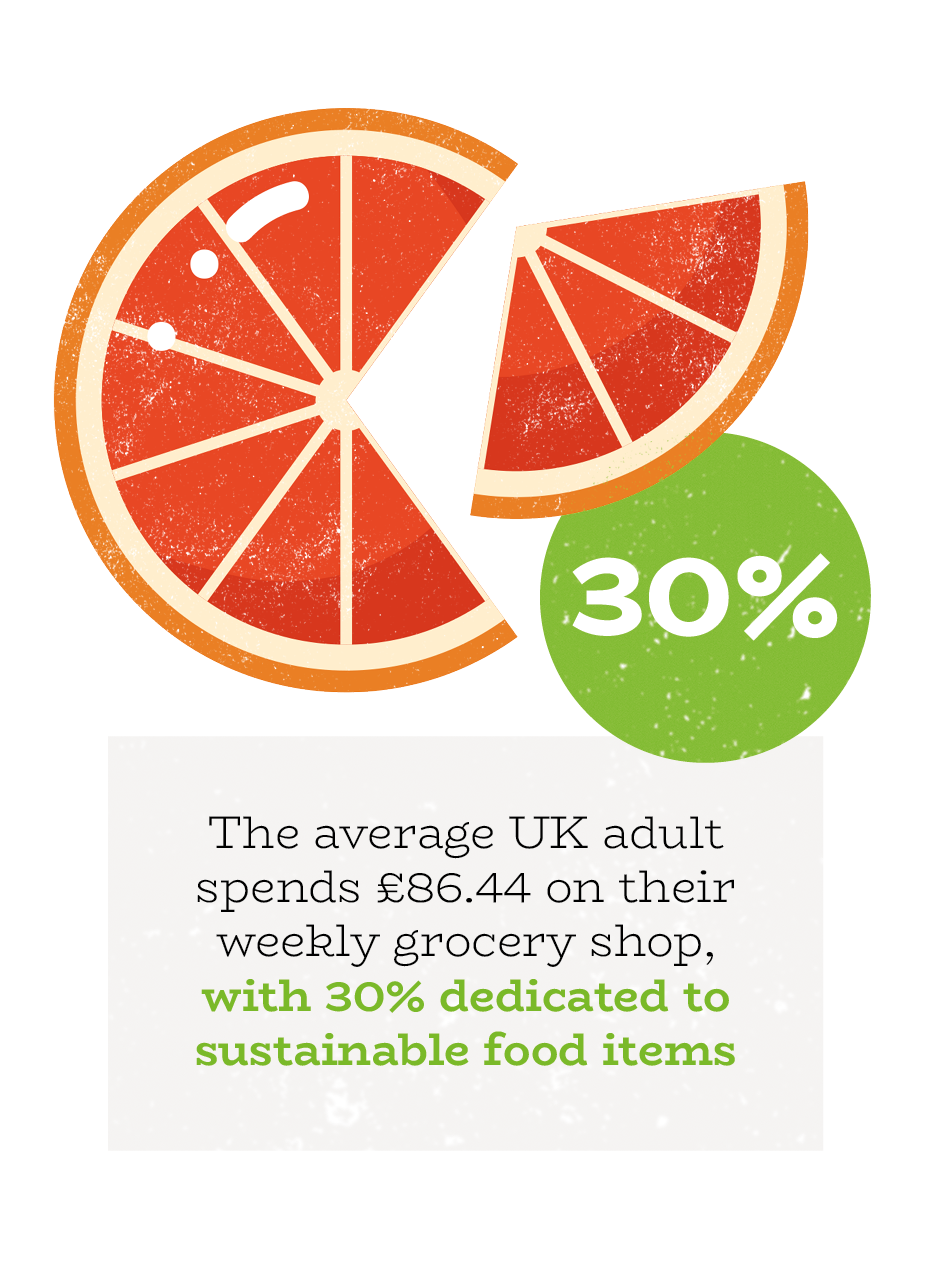 The average UK adult spends £86.44 on their weekly grocery shop, with 30% dedicated to sustainable and organic food items